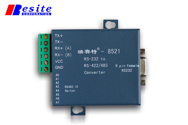 在瑞赛特-8521上有3个指示灯。当转换器接通电源时,PWR灯亮,当RS-232设备往RS-485总线上传送数据时TXD灯闪烁,当转换器从RS-485总线上接收数据时,RXD灯闪烁。
