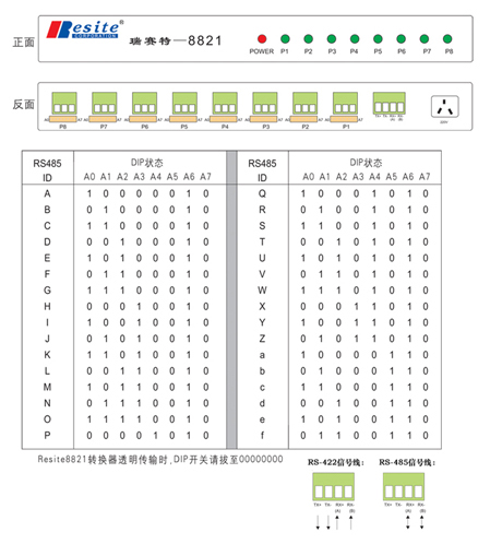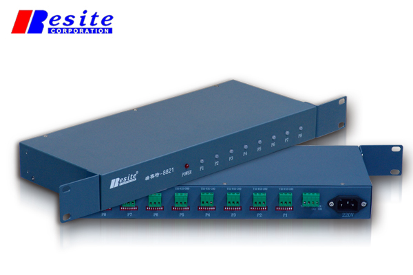 瑞赛特-8821可以给8路串口设备加上地址并通过485或422总线进行数据通信。可把8个RS232设备连接到RS422或RS485的总线上。适用于电力、门禁、安防、工控等不带地址的RS232总线网络。