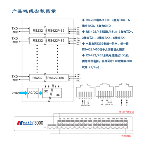 多数的工业计算机系统都有标准的RS-232串行端口。RS-232虽然被广泛接受,但其数据传输的速度、范围及网络化能力方面都存在着局限性。RS-422和RS-485通过对数据信号和控制信号使用差分电压克服了这些限制。瑞赛特-3000转换器能让您在配有RS-232的系统上使用RS-422及RS-485。它透明地将RS-232信号转成隔离的RS-422或RS-485信号,实现17路RS232信号输入17路RS-422/485信号输出。